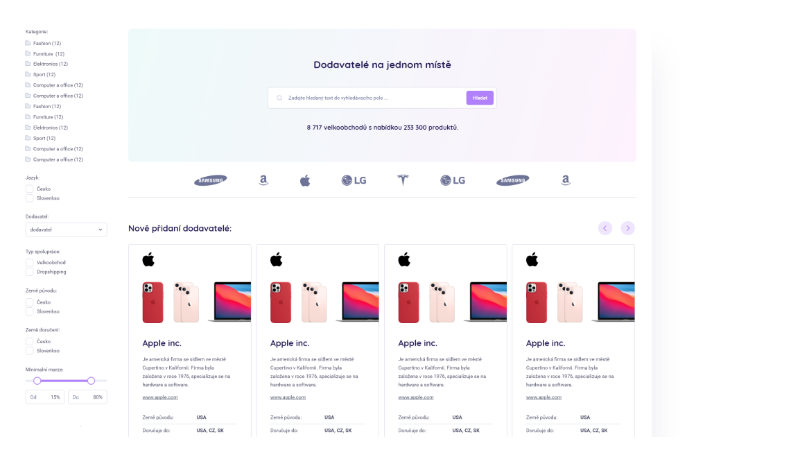 Vybírejte podle kategorie, země, marže nebo způsobu prodeje.